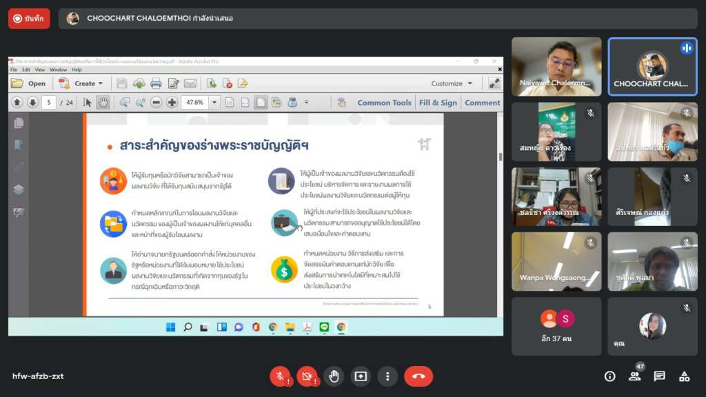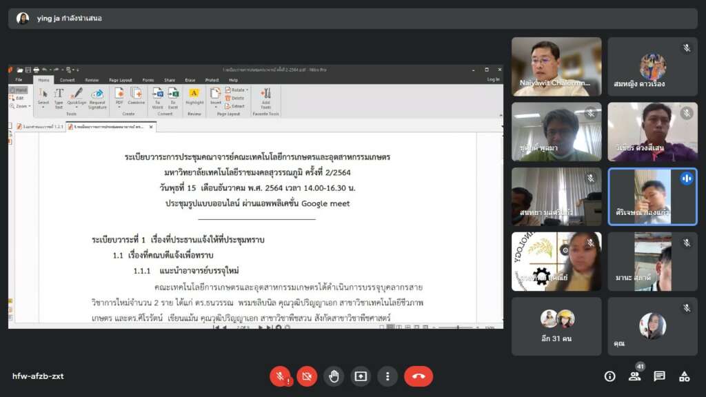 ผู้ช่วยศาสตราจารย์ ดร.นัยวิท เฉลิมนนท์ คณบดี เป็นประธานการประชุมคณาจารย์คณะเทคโนโลยีการเกษตรและอุตสาหกรรมเกษตร ครั้งที่ 2/2564 เพื่อแจ้งผลการดำเนินงานการจัดทำฟาร์มสาธิตเกษตรแบบประณีตและแม่นยำร่วมกับหน่วยงานภายนอก และแนวทางการปฏิบัติในการป้องกันการแพร่ระบาดของโรคติดเชื้อไวรัส COVID-19 ระหว่างจัดการเรียนการสอน โดยมีรองคณบดีร่วมรายงานผลการดำเนินงานด้านบริหารและพัฒนาระบบ ด้านวิชาการและวิจัย และด้านพัฒนานักศึกษา พร้อมหารือแนวทางการพัฒนาคณะร่วมกัน ทั้งนี้ ผู้ช่วยศาสตราจารย์ ดร.ณัฐกิตทิ์ โตอ่อน ได้นำเสนอรายงานสรุปการเข้าร่วมประชุมการศึกษาวิจัยและการพัฒนาพืช “กัญชาและกัญชง” และ อาจารย์ชูชาติ เฉลิมถ้อย นำเสนอสาระสำคัญของพระราชบัญญัติส่งเสริมการใช้ประโยชน์ผลงานวิจัยและนวัตกรรม พ.ศ. 2564 ให้คณาจารย์ที่เข้าร่วมประชุมรับทราบ เมื่อวันพุธที่ 15 ธันวาคม 2564 เวลา 14.00 น. ในรูปแบบออนไลน์ผ่านแอปพลิเคชัน Google Meet