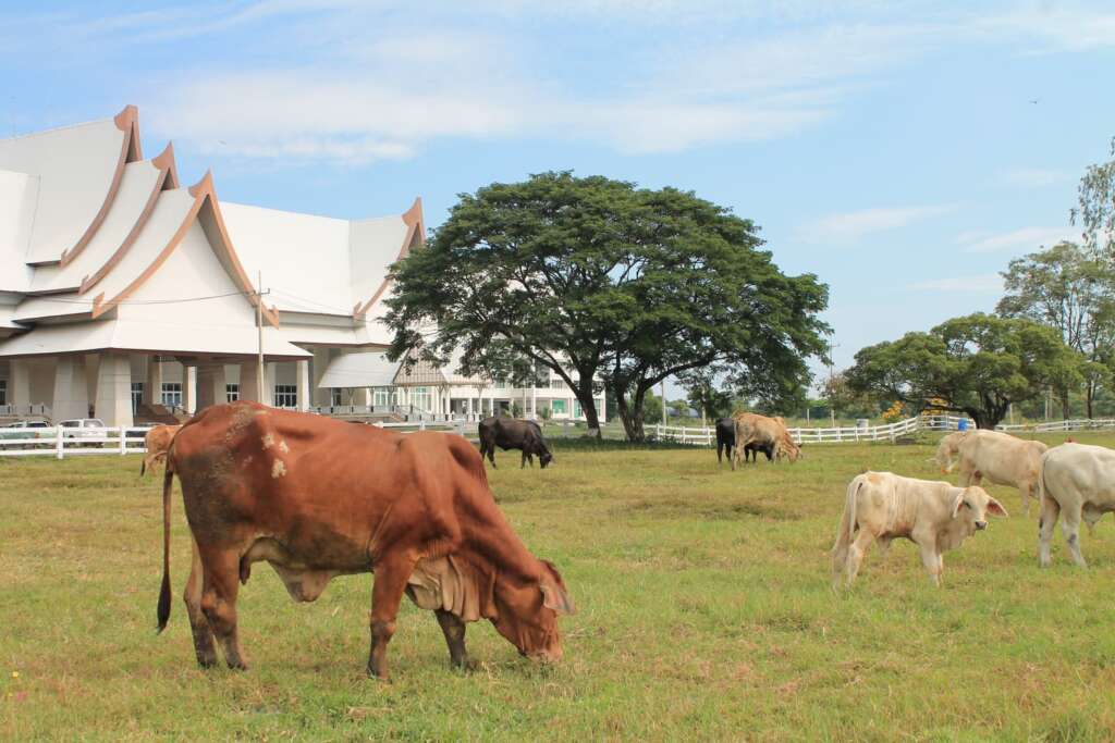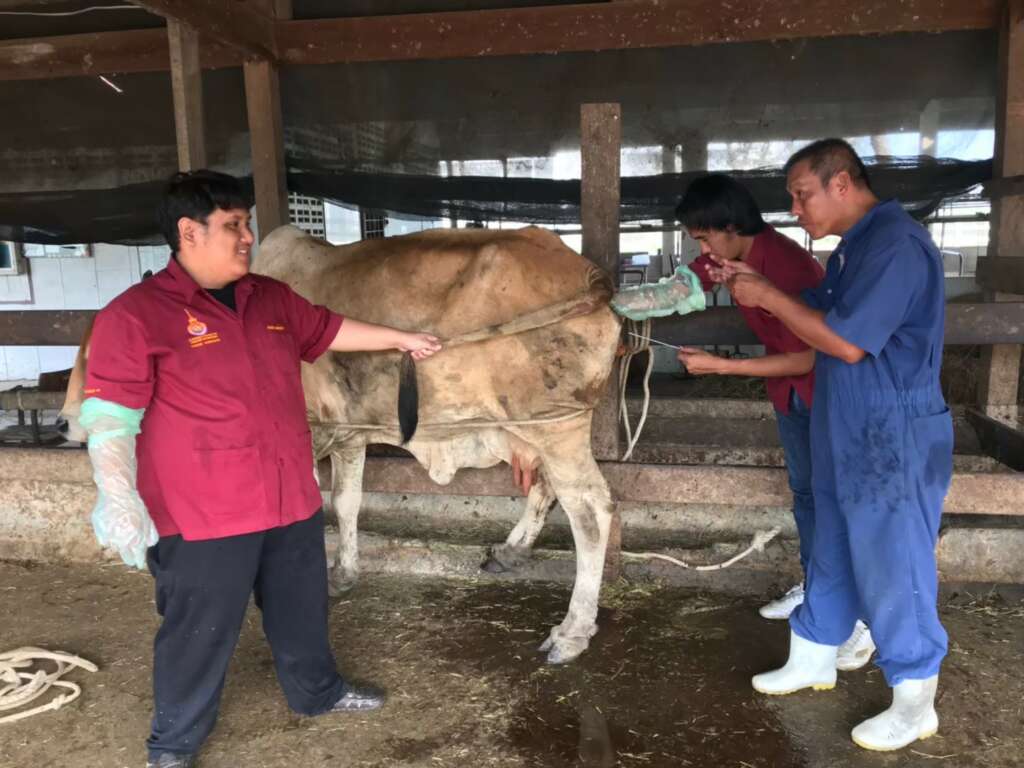 กลับหน้าหลัก เทคโนโลยีการเพิ่มผลผลิตสัตว์ (การขยายพันธุ์สัตว์โดยการผสมเทียม การปรับปรุงพันธุ์โคเนื้อ-โคนม การใช้สมุนไพรเพื่อการผลิตสัตว์) การขยายพันธุ์สัตว์โดยการผสมเทียม เนื่องจากสัตว์พันธุ์ดีมีข้อจำกัดในการนำไปใช้ประโยชน์หลากหลายประการ เช่น ข้อจำกัดด้านการเดินทางของพ่อพันธุ์หรือแม่พันธุ์ ข้อจำกัดด้านโรคติดต่อและพาหะ และ ข้อจำกัดของตัวสัตว์เอง เป็นต้น ทำให้การผสมเทียมเป็นที่นิยมอย่างแพร่หลาย อย่างไรก็ตาม การผสมเทียมให้มีประสิทธิภาพและได้ผลลัพธ์อย่างที่ต้องการนั้นจำเป็นต้องดำเนินการโดยผู้ที่มีความเชี่ยวชาญหรือมีประสบการณ์ ดังนั้น สาขาวิชาสัตวศาสตร์จึงมีการจัดอบรมนักผสมเทียมเป็นประจำ เพื่อให้ผู้เข้าอบรมสามารถเตรียมอุปกรณ์ เตรียมความพร้อมของสัตว์ ผสมเทียม และ ตรวจการตั้งท้องของสัตว์ได้อย่างถูกต้องและแม่นยำ การปรับปรุงพันธุ์โคเนื้อ-โคนม การให้ผลผลิตของโคเนื้อและโคนม เช่น น้ำหนักตัว การเจริญเติบโต และ การผลิตน้ำนม เป็นต้น เป็นผลมาจากอาหารที่โคเนื้อและโคนมกินเข้าไป ร่วมกับ ความดีเด่นของพันธุกรรมของโคเนื้อและโคนมตัวนั้นๆ ดังนั้น การพิจารณาว่าโคเนื้อและโคนมตัวใดมีความดีเด่นของพันธุกรรมอยู่ในระดับใด (ดีเด่น ดีมาก ปานกลาง และ น้อย เมื่อเทียบกับค่าเฉลี่ยของฝูง) จำเป็นต้องอาศัยผู้ที่มีความเชี่ยวชาญหรือมีประสบการณ์เกี่ยวกับการใช้ประโยชน์ของข้อมูลบันทึกการให้ผลผลิตและข้อมูลพันธุ์ประวัติเพื่อให้โคเนื้อและโคนมในฝูงนั้นๆ เพื่อคัดเลือกโคเนื้อหรือโคนมไว้เป็นพ่อพันธุ์และแม่พันธุ์ชั้นเลิศภายในฝูงและทำให้โคภายในฝูงให้ผลผลิตสูงที่สุด การใช้สมุนไพรเพื่อการผลิตสัตว์การใช้องค์ความรู้จากการใช้สมุนไพรที่เป็นภูมิปัญญาพื้นบ้านร่วมกับองค์ความรู้สมัยใหม่ในการดูแลรักษาสัตว์ตามหลักเภสัชกรรมไทยและหลักเวชกรรมไทยสำหรับการดูแลสุขภาพสัตว์ การเพิ่มผลผลิต และ การเพิ่มมูลค่าของผลผลิตเป็นสิ่งที่กำลังได้รับความนิยมเป็นอย่างมาก นอกจากนี้ หลักการใช้สมุนไพรตามมาตรฐานความปลอดภัยของอาหารและกระบวนการผลิตสินค้าปศุสัตว์อินทรีย์ รวมไปถึงแนวทางในการพัฒนาและแปรรูปผลิตภัณฑ์สมุนไพรสำหรับสัตว์ในเชิงธุรกิจเป็นสิ่งที่ทางสาขาวิชาสัตวศาสตร์ได้ดำเนินการอย่างต่อเนื่องจากผู้เชี่ยวชาญด้านการใช้สมุนไพรในสัตว์และยังเป็นที่ปรึกษาให้กับหน่วยงานภาครัฐอีกหลายแห่ง พร้อมให้คำปรึกษาและแนะนำแก่ผู้ที่สนใจ